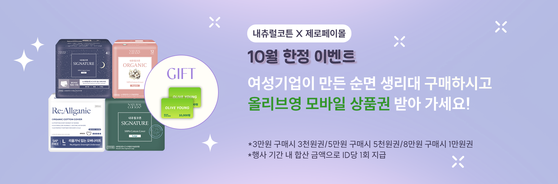 [내츄럴코튼] 시그니처 오가닉 유기농 생리대 중형/대형/오버나이트/롱 라이너 10팩 모음전