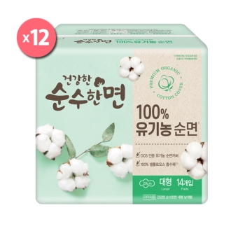 [깨끗한나라] 건강한 순수한면 유기농 순면 대형 14매 x 12팩