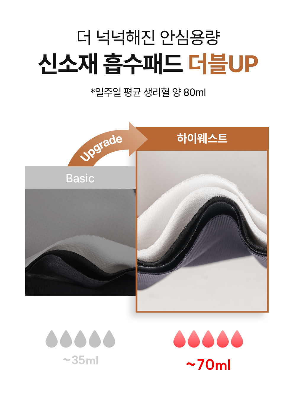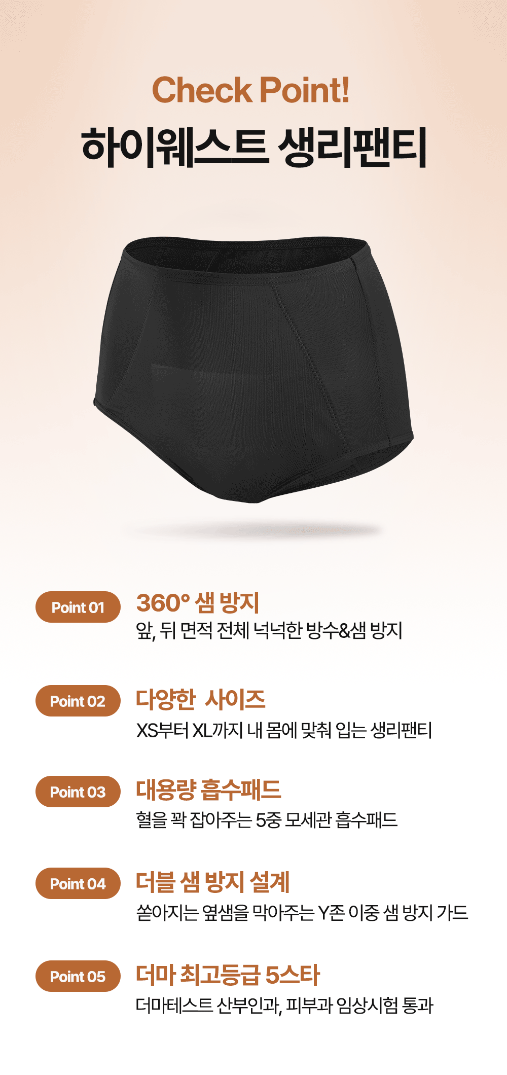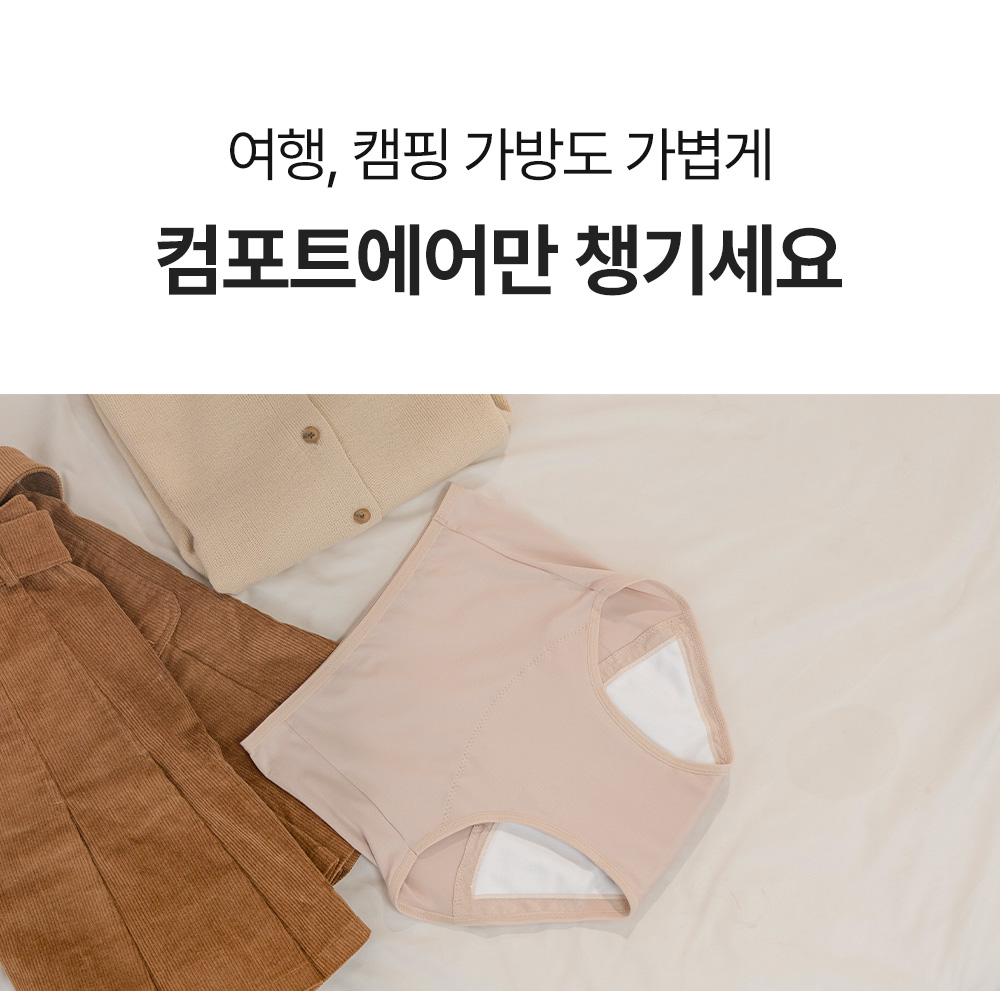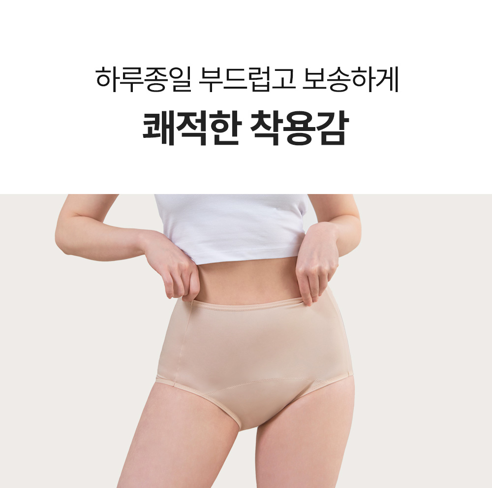 단색 컴포트에어 하이웨스트 생리팬티 3장 SET + (증정) 효소세제 300ml + 방수 파우치