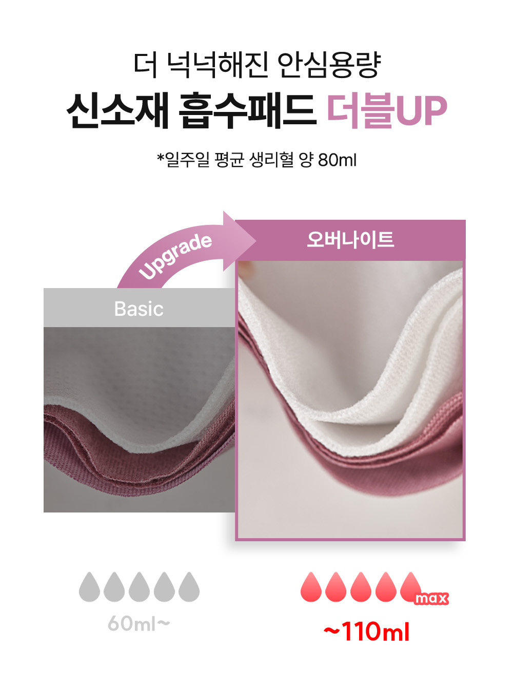 • 단색 컴포트에어 생리팬티 하이웨스트1 & 오버나이트1 + (증정) 효소세제 300ml + 파우치