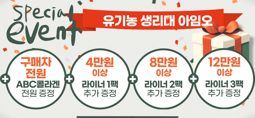 [사은품증정][6팩구성][유기농 생리대 아임오] 초특가+증정품(소,중,대,라이너,롱라이너,나이트)