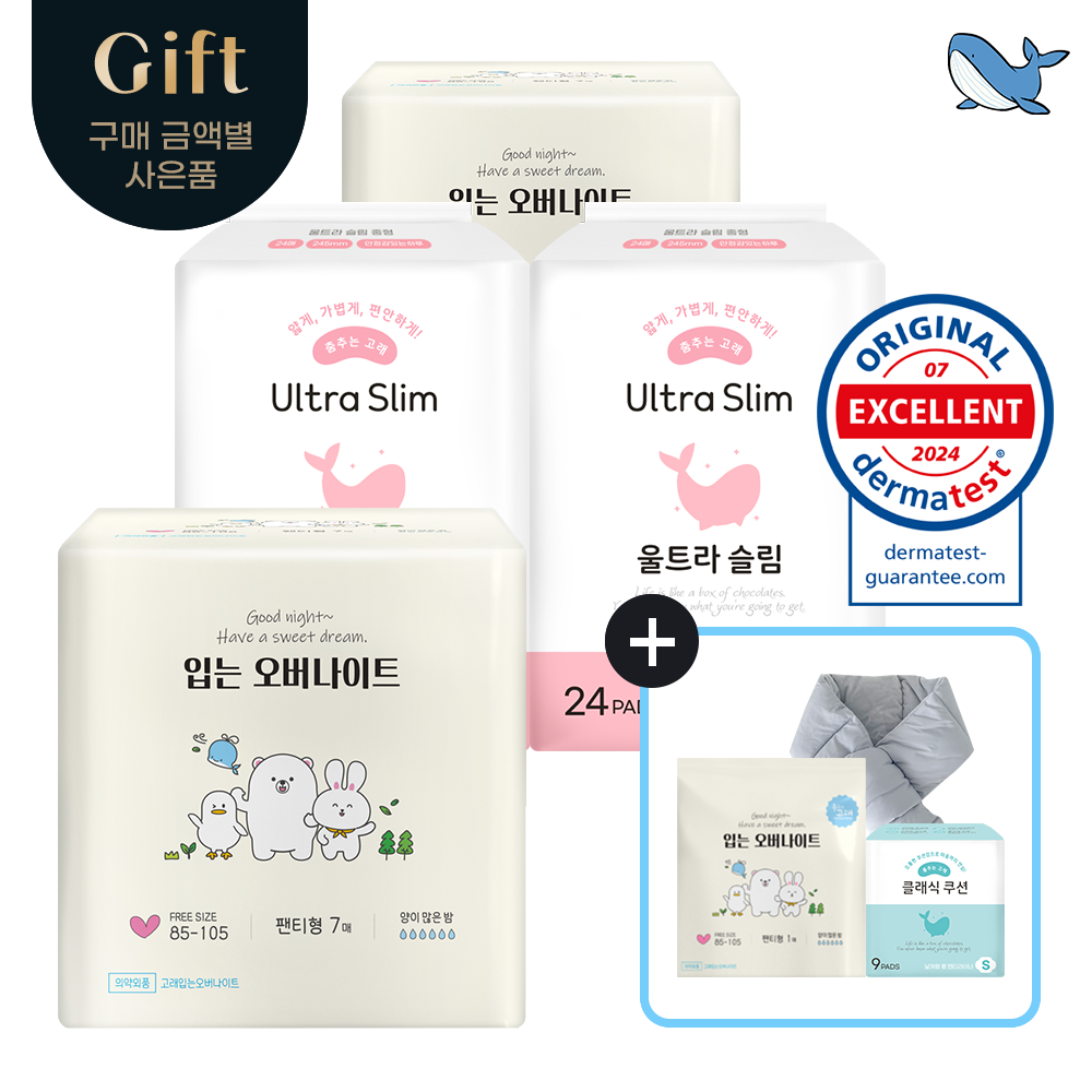 춤추는고래 대용량 중형 24매 X 2팩 + 입는 오버나이트 7매 x 2팩 /62P