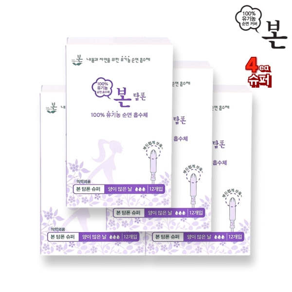 유기농본 순면커버 본 탐폰 슈퍼 12매 * 4팩
